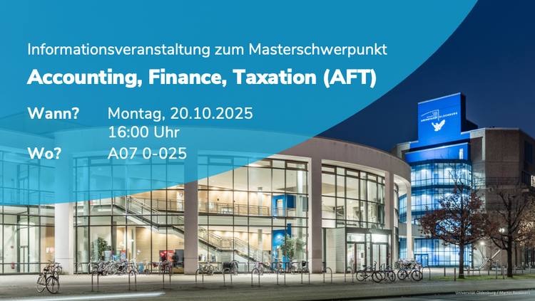 Am Montag, den 20. Oktober 2025, findet wieder unsere gemeinsame Informationsveranstaltung zum Masterschwerpunkt Accounting, Finance & Taxation statt. Prof. Dr. Jörg Prokop und Prof. Dr. Christoph Sextroh berichten über die thematische Vielfalt und die späteren Karriere-Möglichkeiten des Schwerpunkts. Informieren Sie sich über das Lehrangebot und Austauschmöglichkeiten des Schwerpunkts und lernen Sie die Lehrenden und ihre Kommiliton*innen kennen. Eine vorherige Anmeldung ist nicht erforderlich.