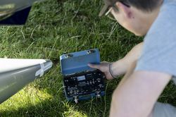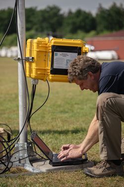 Für den Testflug baute das Oldenburger Team vorübergehend eine Empfangsstation auf dem Flugplatz auf. Gemeinsam mit rund 60 festen Stationen entlang der Nordseeküste war sie Teil des „Motus Wildlife Tracking System“, einer weltweiten Forschungskooperation, die die Zugrouten kleiner Singvögel, Fledermäuse und Insekten verfolgt. Die festen Stationen bestehen aus vier Richtantennen an einem bis zu zehn Meter hohen Mast. Sie empfangen Funksignale aus einem Umkreis von bis fünf bis 20 Kilometern.