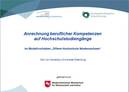 Der Kompetenzbereich Anrechnung empfiehlt Hochschulen, die Weiterbildung in einem Umfang von bis zu 13 Kreditpunkten ECTS auf Bachelor-Studiengänge anzurechnen.