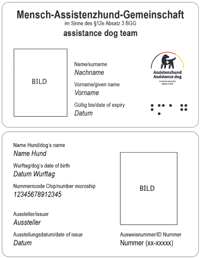 - Einen offiziellen Assistenzhund-Ausweis, der auf Nachfrage vorgezeigt werden kann.