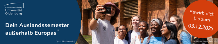 Vom 3. November bis zum 3. Dezember 2025 können Sie sich auf die vorhandenen Restaustauschplätze der Universität Oldenburg für ein Studium an außereuropäischen Universitäten (exkl. Nordamerika) im Jahr 2026 bewerben.
