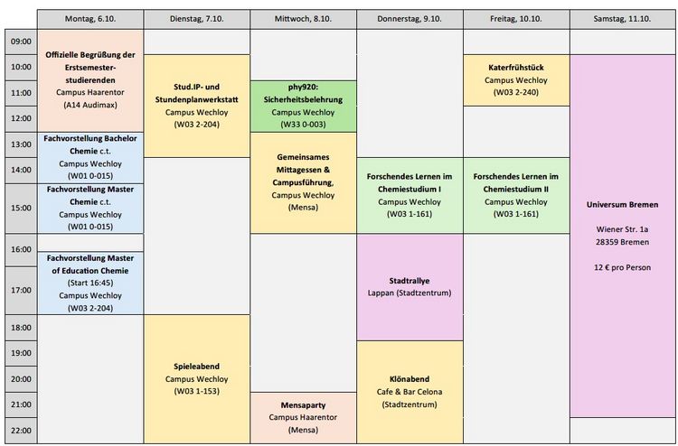 08:00 – 12:00 Uhr „Offizielle Begrüßung der Erstsemesterstudierenden”, Ort: Campus Haarentor