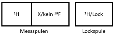 Probenkopf: 1H-Spule außen – XF-Spule innen → Heterokerne sind empfindlicher als am BBI-Probenkopf.