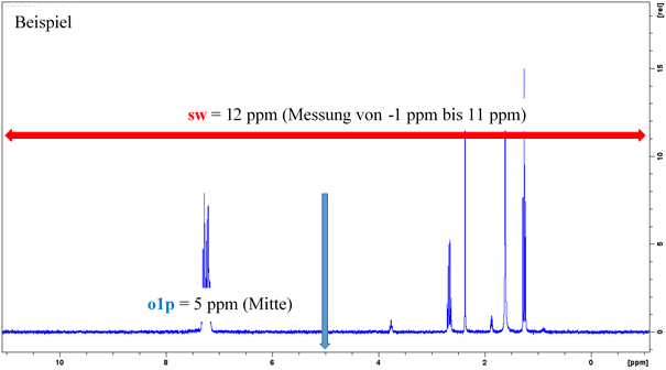 - sw = Breite des Spektrums in ppm