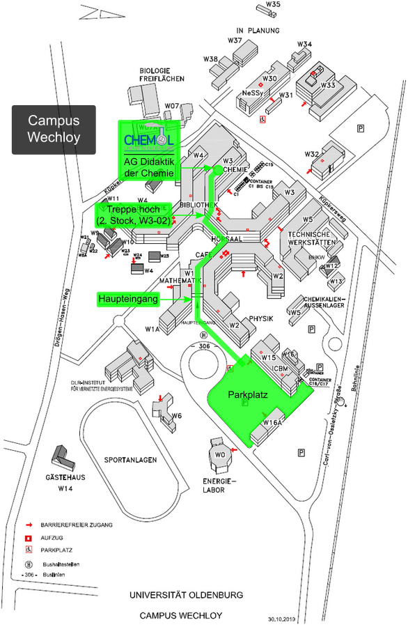 Die aktuelle Anfahrt zum Campus Wechloy finden Sie beim InfoPortal Universität.