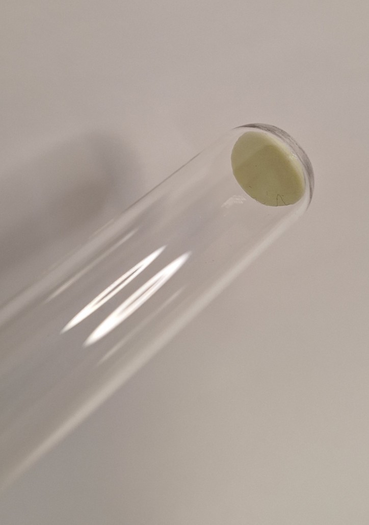 Die Wasserstoff-Nachweisfolie kann auch in Ergänzung zur Knallgasprobe eingesetzt werden. Hierfür wird in Vorbereitung die Folie mit Sekundenkleber am Boden des Reagenzglases befestigt (siehe Bild) und dieses im Anschluss zum Auffangen des Wasserstoffes genutzt. Die Folie bietet hierbei zwei Vorteile. Zum einen ist sie ein ergänzender Nachweis des Wasserstoffs durch die Farbindikation und zum anderen einen Indikator, ab wann genug Wasserstoff für eine positive Knallgasprobe aufgefangen wurde.
