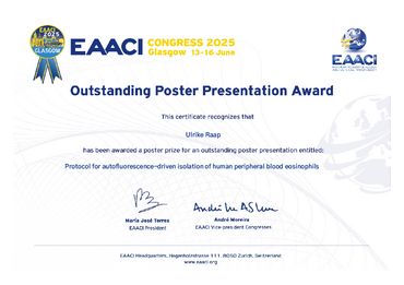 Auf dem EAACI Kongress 2025, 13.06.-16.06.2025 in Glasgow, wurde Ulrike Raap für ihre hervorragende Präsentation ausgezeichnet.