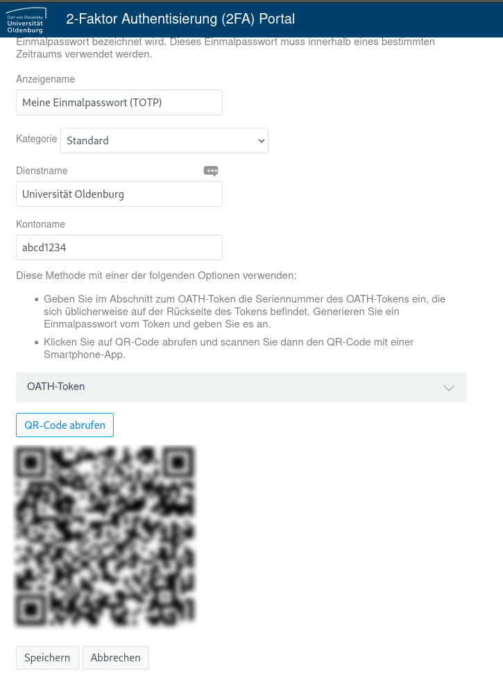 If you already use another TOTP service, you can also use it for two-factor authentication at the University of Oldenburg.