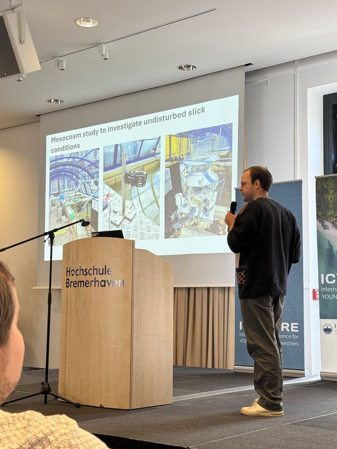 Gurleen Singh, supervised by Isha Athale, presented work from the Helgoland cruise in 2024 on a poster. Jasper Zöbelein, Carsten Rauch and Amavi N. Silva presented talks in Session Advances in Air-Sea Interactions about DOM in the mesocosm, autonomous sampling with HALOBATES and GLAUCUS and meta-analysis of enrichment factor assessment. This session itself was co-hosted by Lea Lange (GEOMAR, SP 2.1) and Samuel Mintah Ayim (ICBM) with the intention to invite all disciplines, methods and scales to identify gaps and link knowledge in air-sea interactions. As two talks on marine heatwaves in the session were unfortunately cancelled, all talks were about the SML. The talks addressed biological and physical processes, different methods and a mathematical assessment on how to best investigate the enrichment factor. The audience didn't seem to mind the change in focus and engaged in lots of questions, also after the session. We were able to spread the word about SML relevance on biogeochemical processes and air-sea exchange to young marine researchers. Some even gave the feedback to hear about it for the first time.