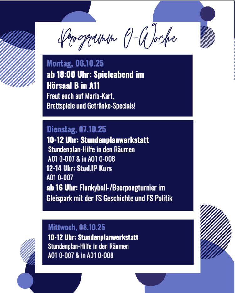 Auch für die Orientierungswoche im WiSe 2025/26 haben wir uns einiges für euch überlegt: