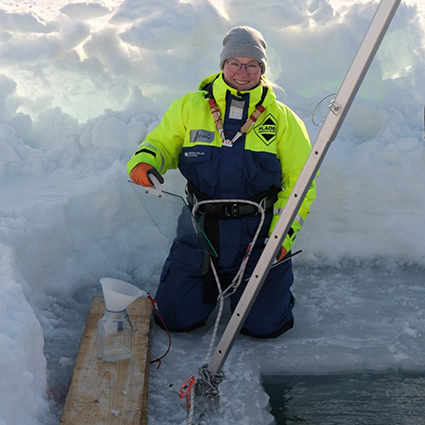 Isabell Schlangen is PhD student at the University of Southern Denmark. She will collect DNA and RNA samples that will provide information on which organisms, e.g. phytoplankton species or bacteria, are present and which genes were active at the time of sampling. In combination with the trace gas samples, she can draw conclusions about how the gases are produced or consumed microbially. Isabell will also carry out incubation experiments on nitrogen and carbon fixation in order to get a better understanding of the nutrient cycling in the Antarctic Ocean.