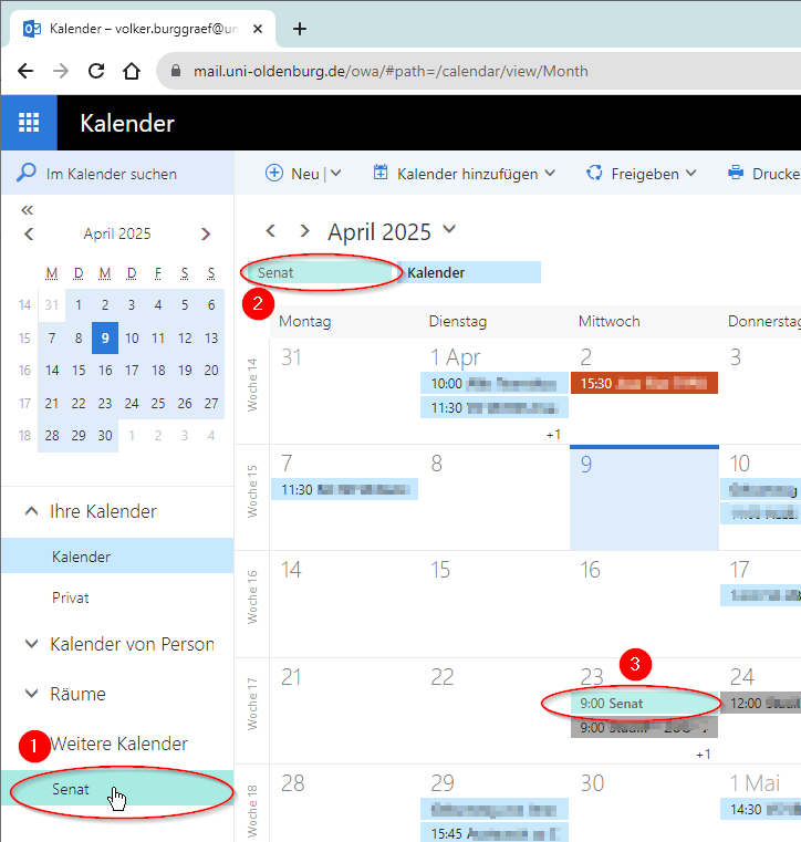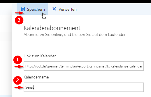 If a calendar is provided on the Internet in iCal format, it can be integrated into your own calendar via the http address of this export format. The corresponding links are often labelled as iCal buttons on the UOL.