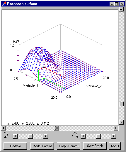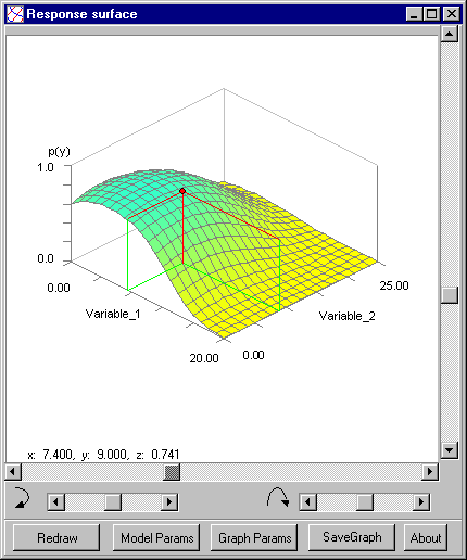 - A reference point may be moved over the response surface indicating the predicted probability (z-value).