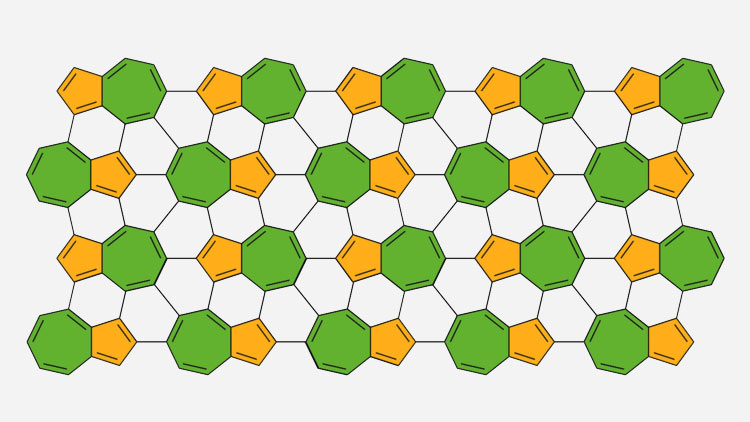 Gottfried, Hilt and colleagues wanted to make similar structures out of five and seven-membered rings. Theory predicted that such large molecular structures, known as polymers, would have unusual properties, but no one had so far succeeded in making them, because when heated the five-member and seven-member rings are prone to rearranging their bonds to form the more stable hexagonal carbon rings.