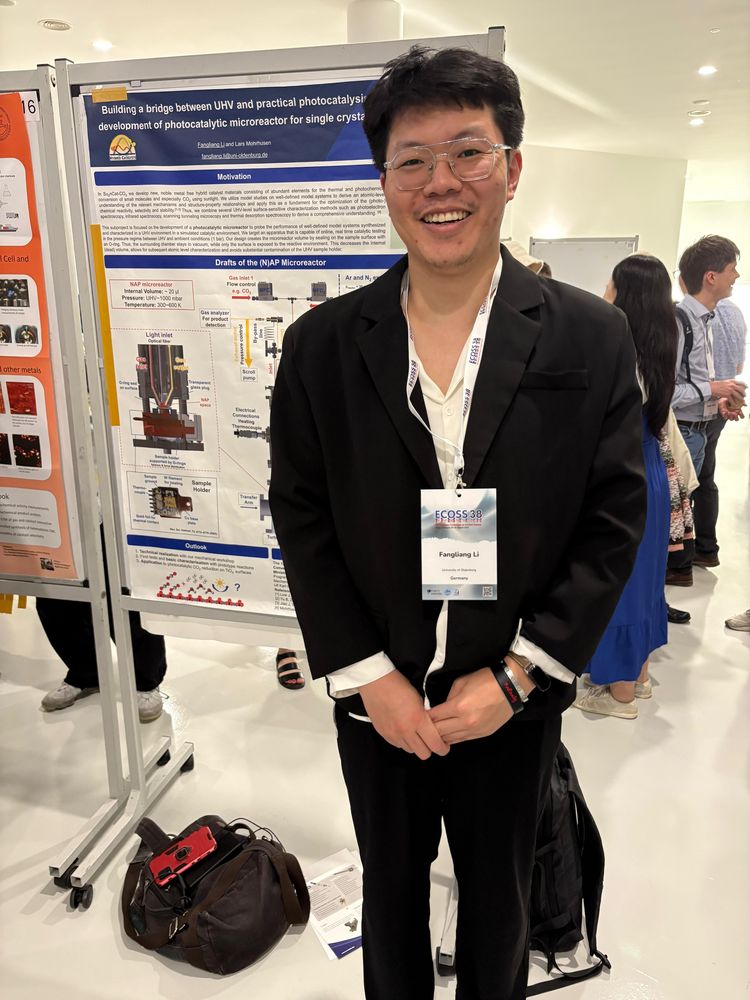 Justin gave his first conference talk on his recent NAP-XPS studies, highlighting new insights into CO2-conversion on highly reduced rutile TiO2. Lars also gave a talk, focusing on model studies of our Ti-based 2D nanocatalysts and sharing results from recent experiments that deepen our understanding of titanium disulfide, a relatively little studied transition metal dichalcogenide. If you're interested and want to find out more, check out our recent publication on the topic here. Lastly, Fangliang presented a poster about his NAP microreactor, showing how he plans to bridge the gap between ultrahigh vacuum studies and more realistic conditions.