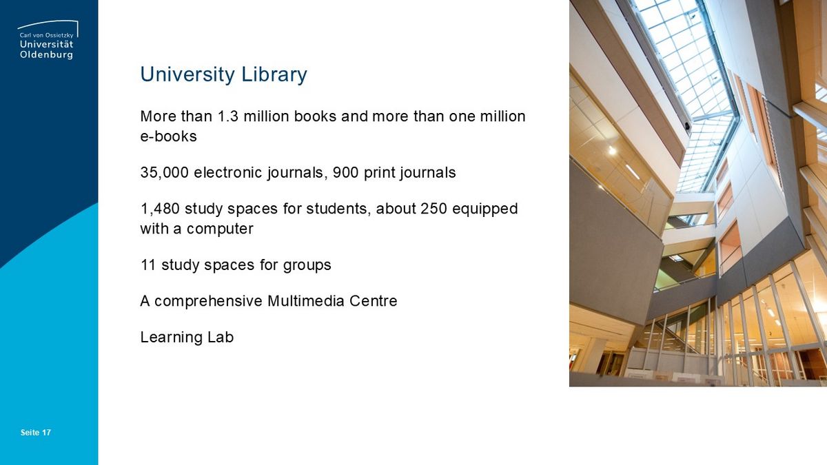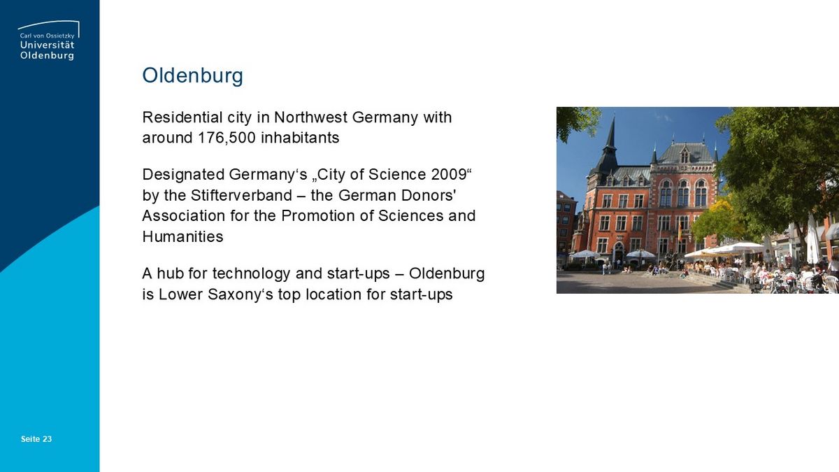 Here you will find a PowerPoint presentation in German and English that introduces the University of Oldenburg on 22 slides.