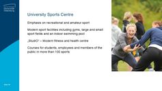 It contains data on the history of the university, its namesake and the main areas of research. The presentation also provides an insight into the areas of study, continuing education, international affairs, career services, library, sports and culture, among others.