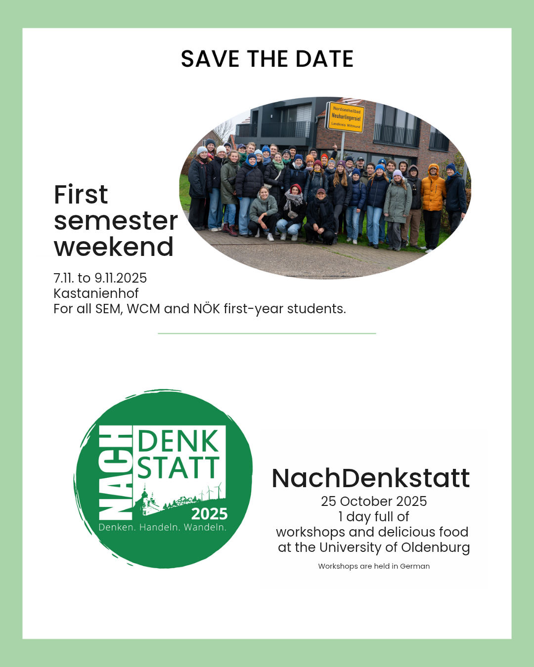 Another event we would like to recommend is the NachDenkstatt – a sustainability conference that originated from the FSR and is still organised by some SEM and NÖK students today.