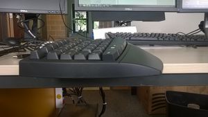 The IT owns a collection of ergonomic mice and keyboards, which are available for rental by users with discomforts.
