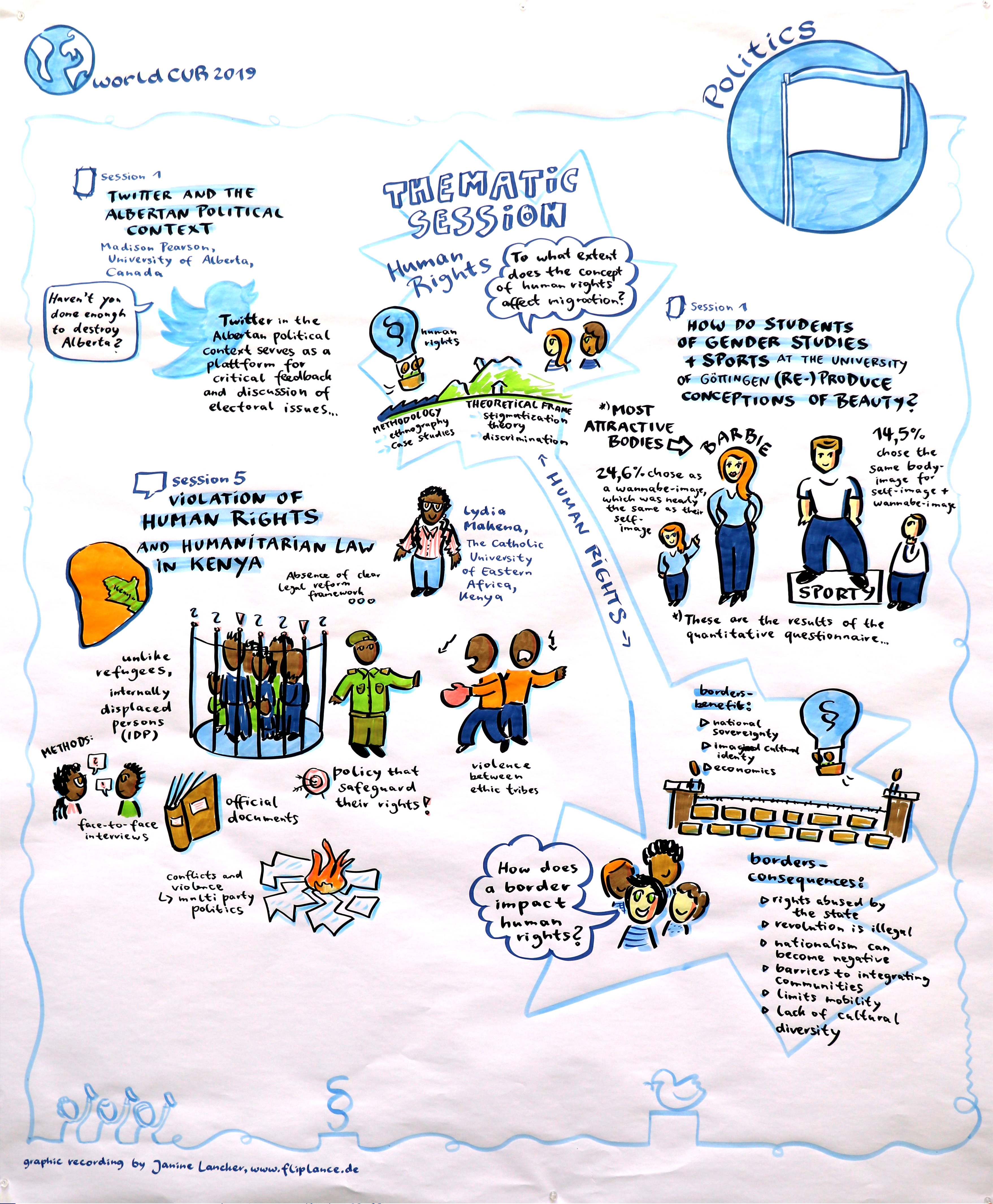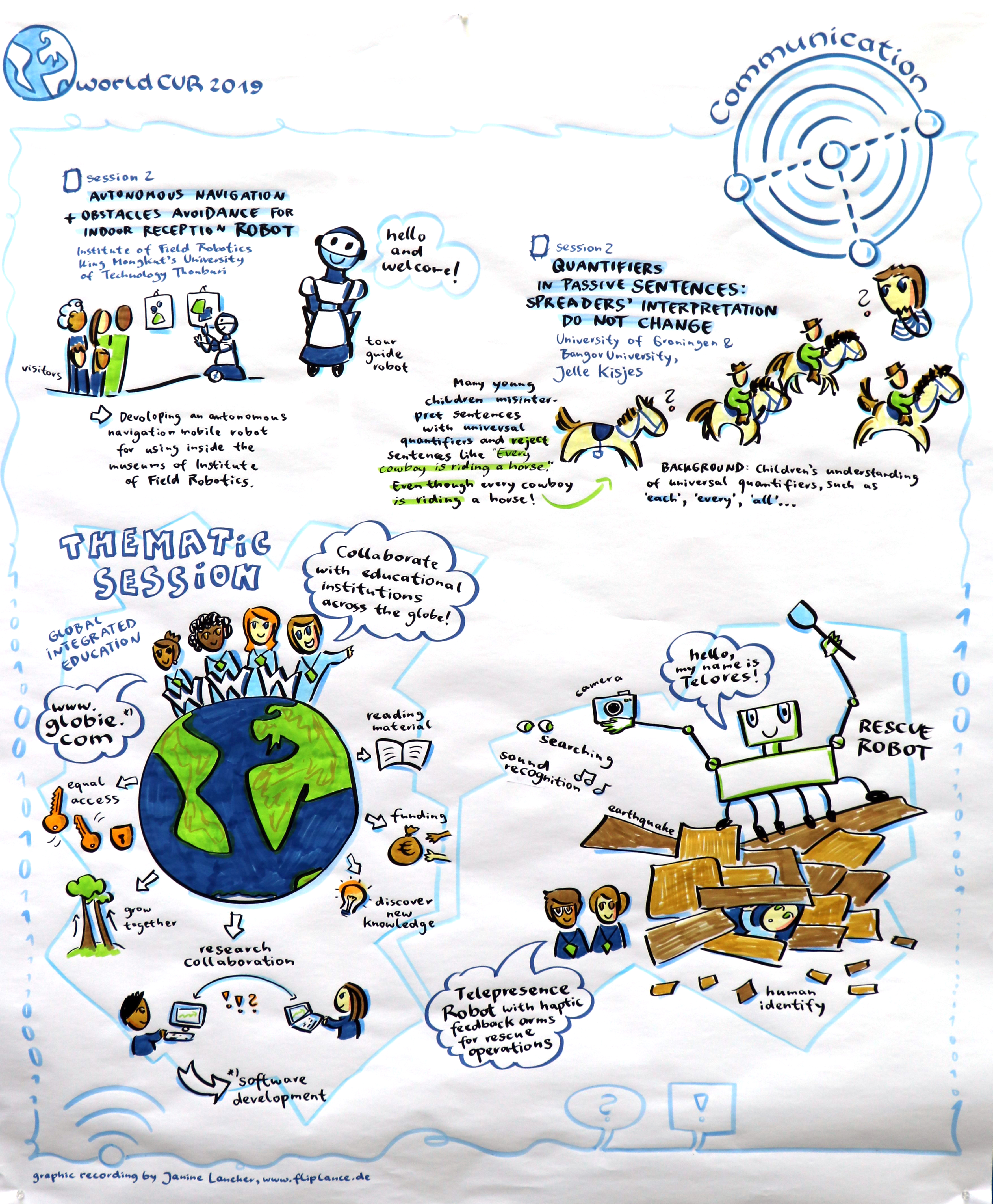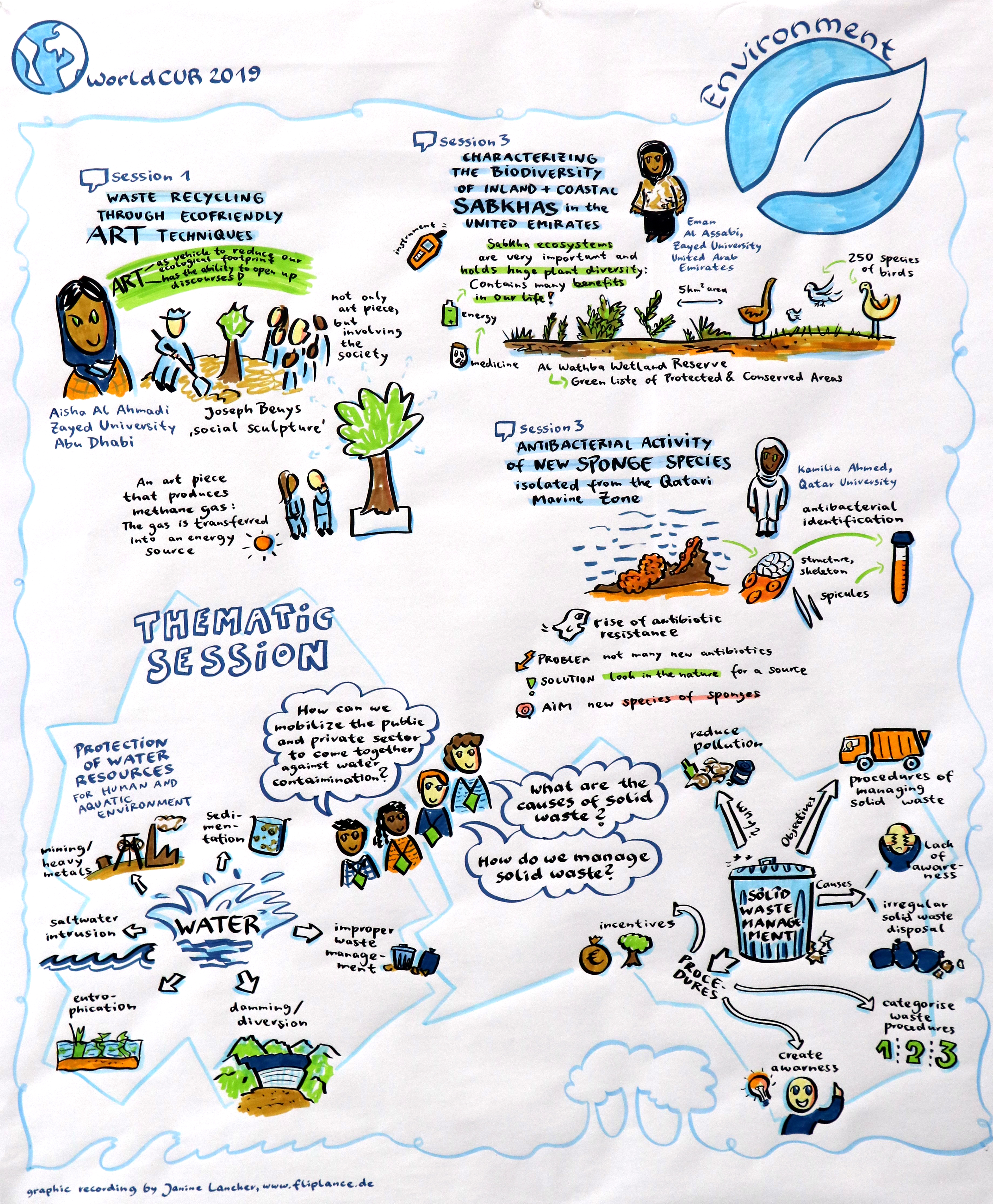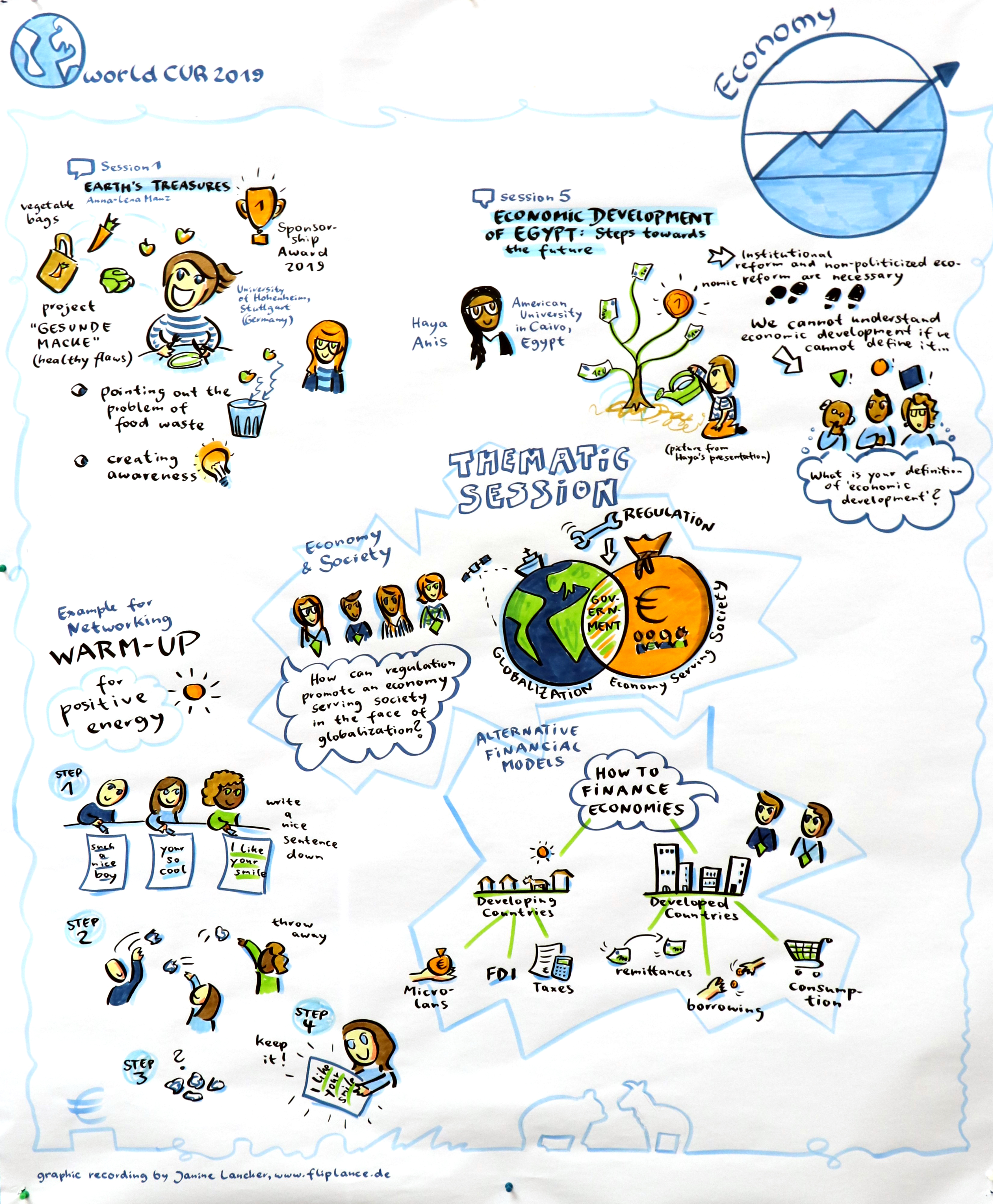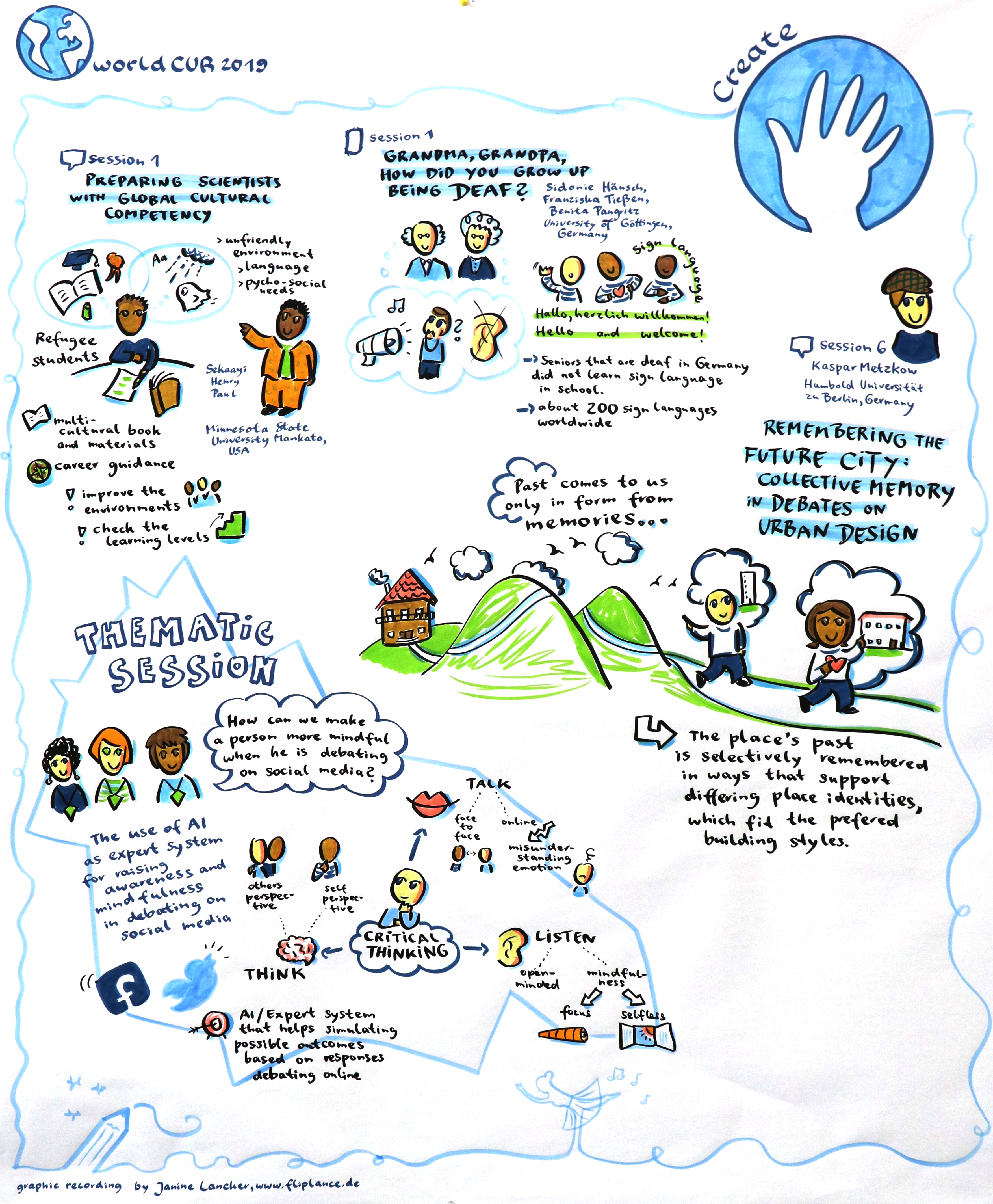 Animated Graphical Recordings: Graphic recording artist Janine Lancker documented the thematic sessions and the research presentations. Talented UOL team member Katja Hemkentokrax animated highlights in 2D. Example: