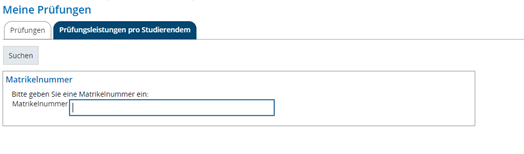 Geben Sie nun die Matrikelnummer des Studierenden ein, für den Sie eine Leistungsverbuchung vornehmen möchten und klicken Sie auf Suchen.
