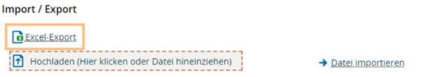 Via „Import / Export“ können Sie die Noteneingabe mit Hilfe einer vordefinierten Excel-