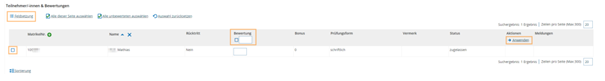 Wenn Sie Leistungen eingeben wird Ihnen in der Liste der Prüflingeam Ende der Zeile unter „Aktionen“ eine Lupen-Icon angezeigt.