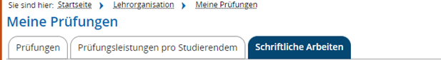 Sofern Sie als Prüfender bei einer Abschlussarbeit zugeordnet sind, können Sie unter dem Reiter „Schriftliche Arbeiten“: