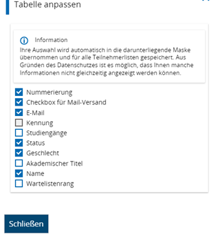 Es öffnet sich die Liste der angemeldeten Studierenden: