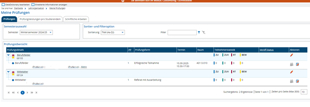Prüfungen können – solange sie noch den Status in Bearbeitungsstatus haben geändert werden.