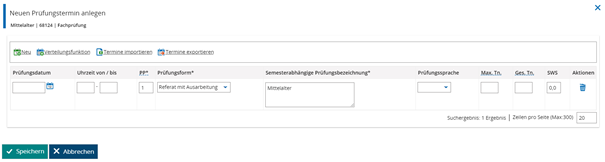 Prüfungstermine können auch direkt durch Sie als Prüfenden in EXA eingestellt werden.
