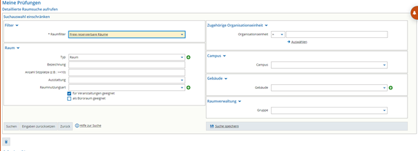 Hier muss das Häkchen „für Veranstaltungen geeignet“ entfernt werden, dann können Sie über Campus und Gebäude sich den passenden Raum aussuchen.
