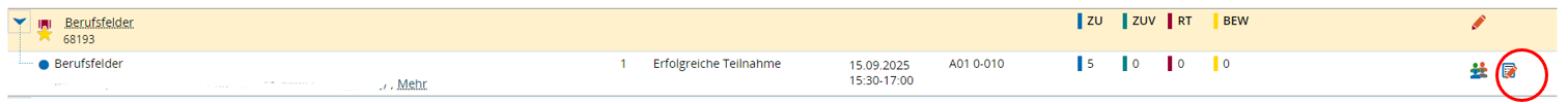 Rufen Sie nun die gewünschte Prüfung auf, in der Sie Leistungen erfassen möchten, indem Sie auf den Notizblock mit dem Stift klicken. ![]()