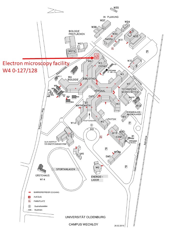 Die zentrale Elektronen- und Lichtmikroskopie ist eine Serviceeinheit der Fakultät V der Carl von Ossietzky Universität Oldenburg und an die Arbeitsgruppe "Sensorische Biologie der Tiere" von Prof. Michael Winklhofer angegliedert. Aktuell betreibt sie ein JEOL IT800 Rasterelektronenmikroskop (REM) und zwei Transmissionselektronenmikroskope (TEMs), ein Zeiss EM900N und ein Jeol 2100F.