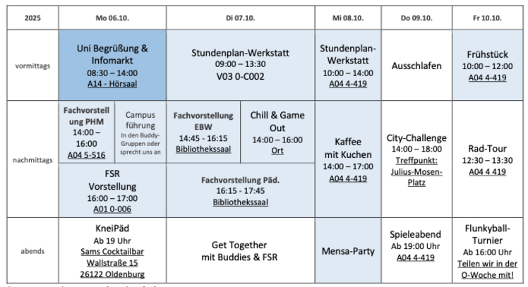 O-Wochen Plan 06.10.-10.10.2025