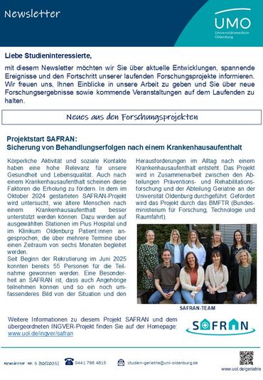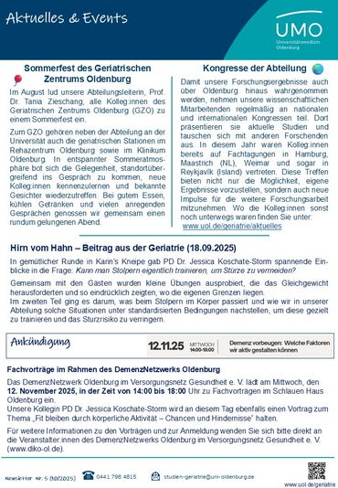 1. Newsletter Abteilung Geriatrie und Einladung zum Präsentationstag