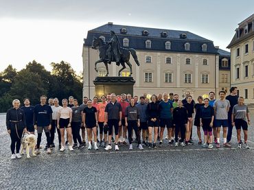 Noch bevor der zweite Kongresstag startete, sorgte Laura Himmelmann aus Oldenburg gemeinsam mit Vanessa Haug aus Ulm für einen aktiven Morgen. Mit dem Kongresspräsidenten Prof. Dr. med. Michael Denkinger (Ulm) boten die beiden Sportwissenschaftlerinnen einen Lauf für die Teilnehmenden des Kongresses an. Nachdem sich rund 40 Läufer:innen am Platz der Demokratie in Weimar versammelt hatten, ging es läuferisch nach einem gemeinsamen Warm-up bei Sonnenaufgang in den berühmten Landschaftspark an der Ilm, in welchem einst Herzog Carl August und Johann Wolfang Goethe ihre künstlerischen Ideen entwickelten und verwirklichten. Vorbei an Goethes Gartenhaus und dem Haus Am Horn ging es nach rund 5 Laufkilometern zurück zum Ausgangspunkt und damit hinein in den neuen Kongresstag.