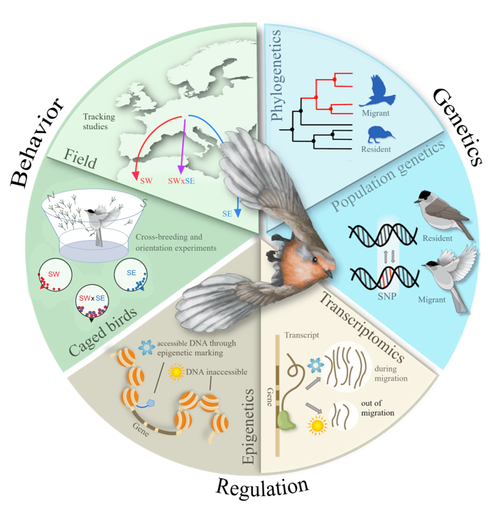 Um diese Frage möglichst effektiv untersuchen zu können, kombinieren wir modernste Sequenzierungsmethoden mit Verhaltensexperimenten an der Mönchsgrasmücke, dem hierfür idealen Zugvogel-Modell.