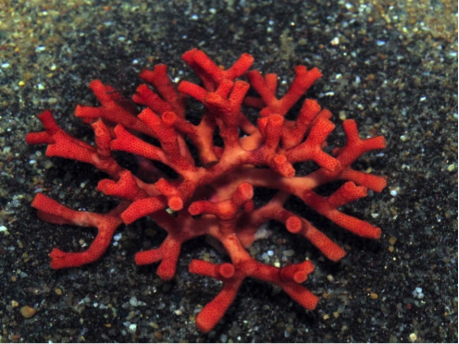 Aussehen: | Orange-rot, runde, strauchartig und gleichmäßig verzweigte Äste; Spitze abgeflacht |