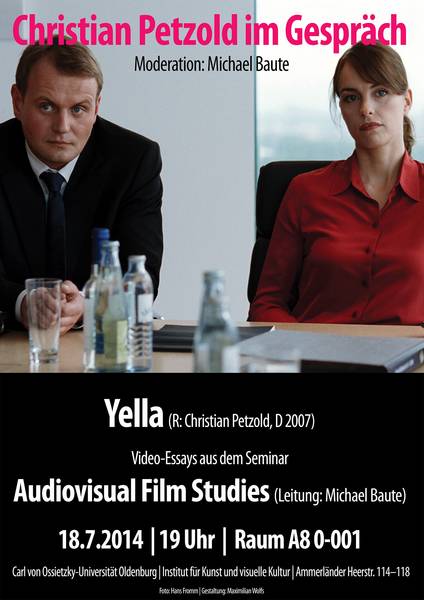 Am 18.7. ist im Rahmen der Präsentationswoche des Instituts für Kunst der Regisseur Christian Petzold zu Gast.Er wird über seinen Film "Yella" sprechen und Video-Essays diskutieren, die im Seminar Audiovisual Filmstudies bei Michael Baute entstanden sind.