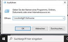 und fügen diesen nach Klick auf den Windows Start-Button in die Eingabezeile 'Programme Dateien durchsuchen' ein. (Falls Sie hier eine Fehlermeldung erhalten, verwenden Sie bitte per Copy/Paste den Eintrag: \\ricohmfg01\FollowMe )