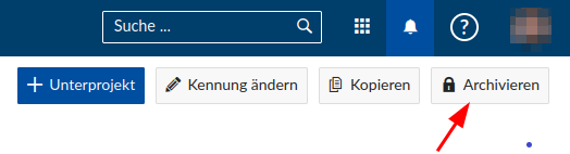Das System sieht vor, dass nur Administratoren Projekte löschen dürfen und nicht die Projektverantwortlichen bzw. -erstellenden selbst (Informationen dazu finden Sie hier unter diesem link). Diese können aber eigene Projekte stattdessen archivieren (ist dann wie gelöscht, siehe nachfolgende Abbildung).