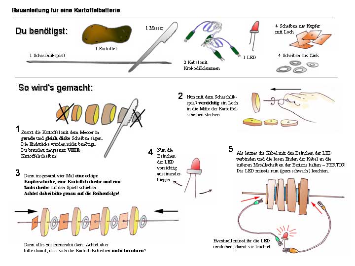 Bauanleitung für eine Kartoffelbatterie