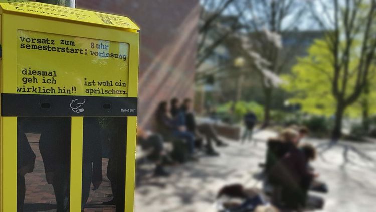 Initiiert von der studentischen Initiative sneep wurden im April 2019 am Campus Haarentor zwei ballot bins aufgestellt. Diese überdimensionalen Aschenbecher sollen dazu beitragen, dass künftig weniger Zigarettenkippen auf dem Boden landen. Die Ballot Bins sind gleichzeig ein Meinungsmonitor, der zum Mitmachen anregt. Sie bestehen aus zwei getrennten Kammern – jede steht für eine Antwortmöglichkeit und hat ein eigenes Loch zum Abstimmen per Kippe. Der aktuelle Stand der Abstimmung ist auf den ersten Blick sichtbar, da die Vorderseite der Bins transparent ist.