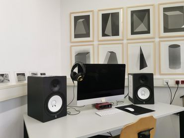 Im Lehr-Lern-Labor stehen Arbeitsplätze mit aktueller Software für die avancierte Gestaltungs-, Recherche- und Dokumentationspraxis zur Verfügung, die audiovisuelle Medien- sowie Internetforschung ermöglichen.