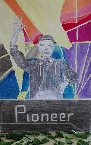 Aline Wernette malt Szenen aus Schlachthöfen, die im Arrangement mit einer Schweineskulptur kritisch Stellung zur Massentierhaltung beziehen. Verschiedene tagespolitische Ereignisse greifen Jannis Moritz und Max Redleff auf und entwickeln dazu Cartoons. Davor liegt auf einem Sockel ein übergroßes Baby aus Gips und Pappmaché, das mit seinem Handy spielt, eine Skulptur von Moritz Müller. Mit einer Installation entführt Alessa Brachmann in die Welt der Technomusik. Sie erinnert an den verstorbenen Techno DJ Tim Bergling.