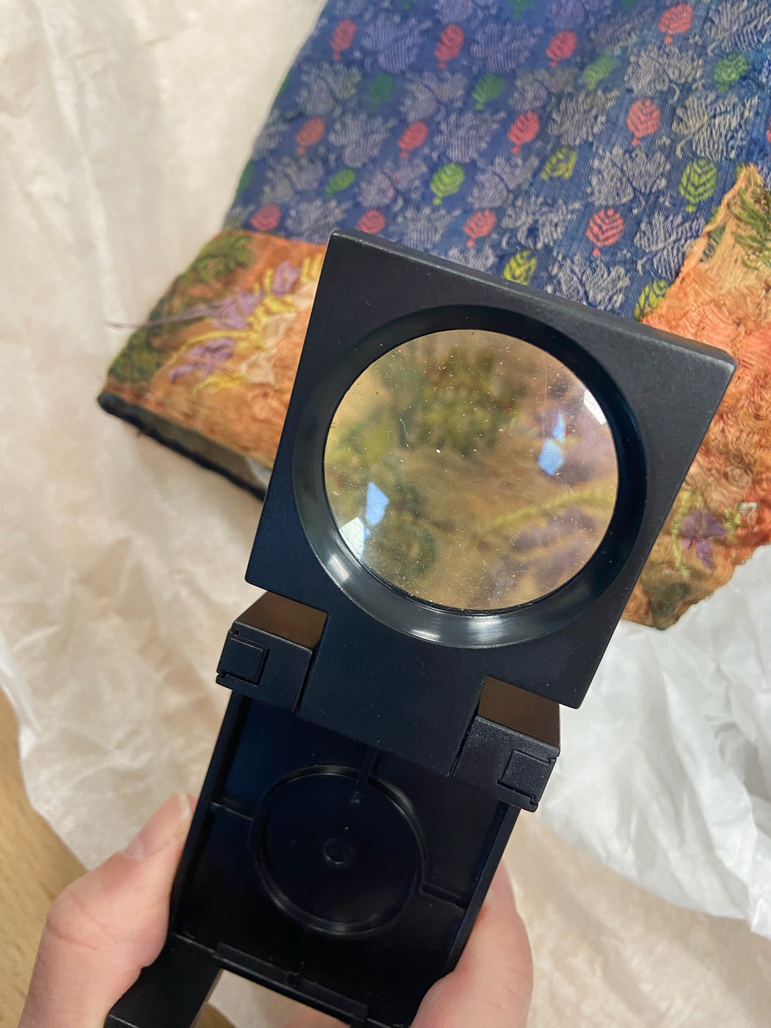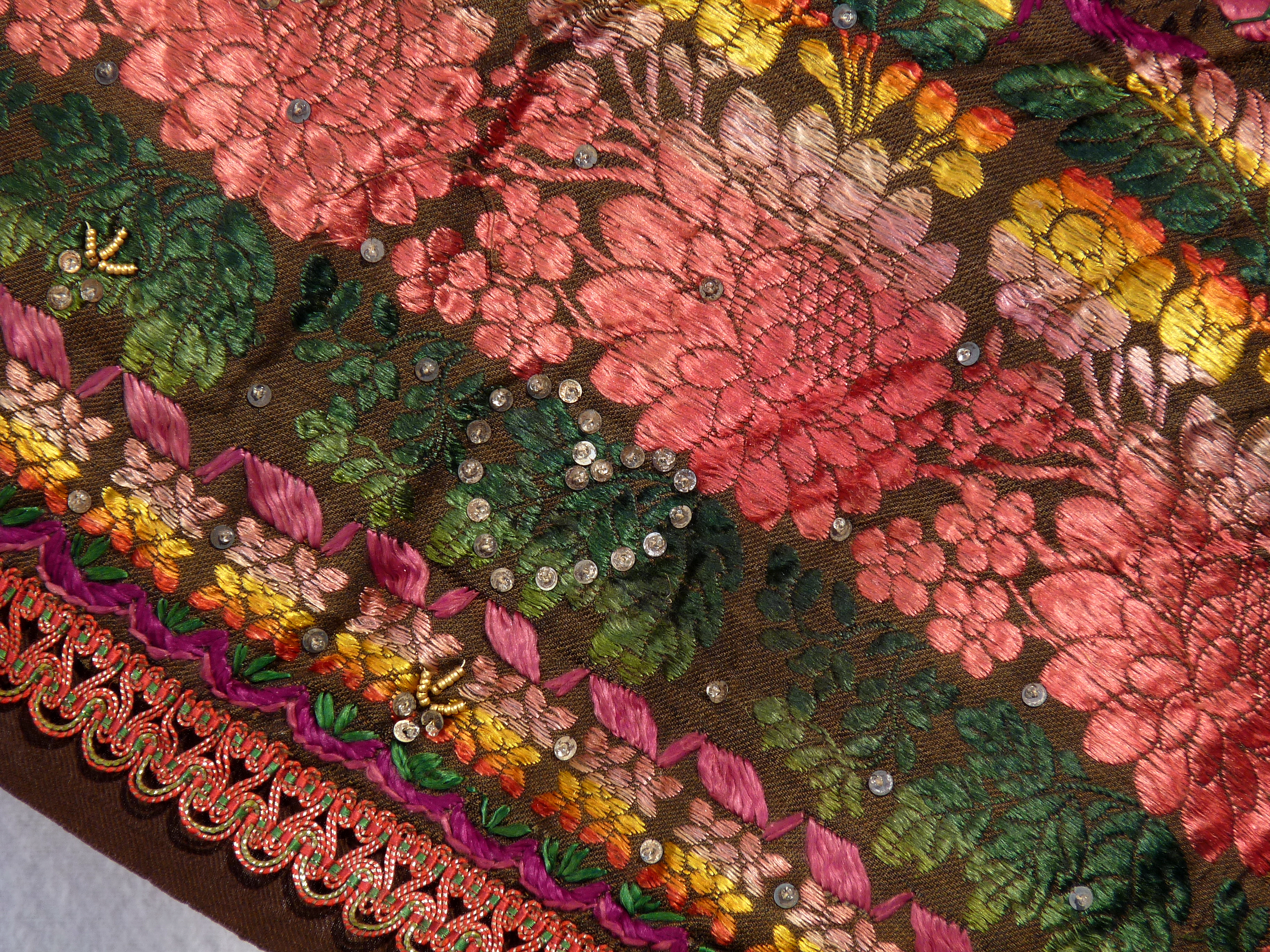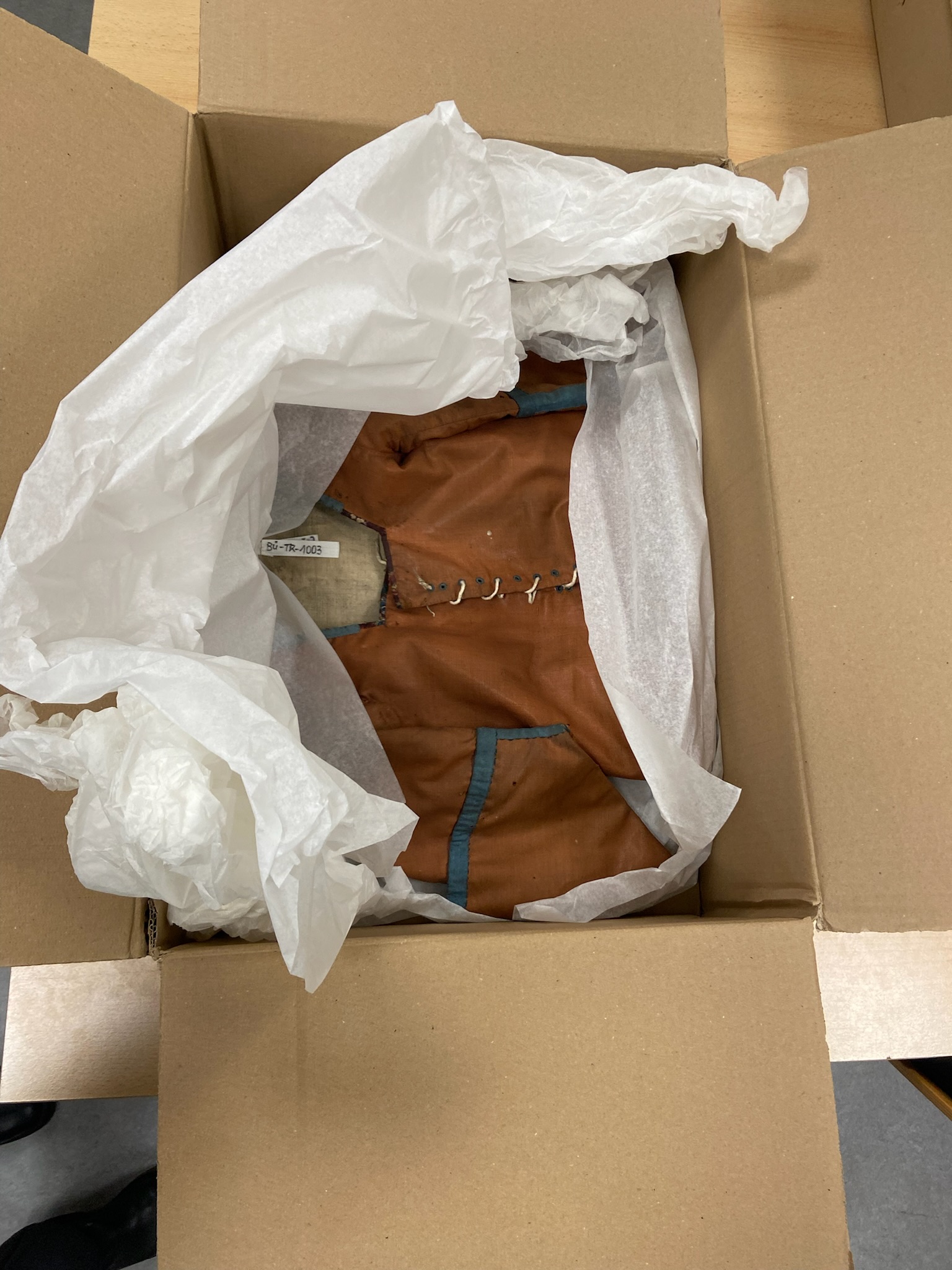 Im Seminar beschäftigten sich die Studierenden aus unterschiedliche Perspektiven mit den Objekten. Dabei ging es zum Beispiel um Fragen nach Transkulturalität (Tracht kann als globales Phänomen beschrieben werden), um Tracht als Konzept, das immer Zugehörigkeit und Abgrenzung zugleich in sich vereint, und um Tracht als Konstrukt, das extern definiert aber von innen heraus auch ‚befüllt’ und beflügelt wird. Es ging aber auch um Fragen ausgehend von den einzelnen Objekten in ihrer spezifischen Materialität, die nichts mit ihrer Zuschreibung als ‚Tracht’ zu tun haben: Wie funktioniert eigentlich Perlstricken, woher kamen die Stoffe, Garne oder Perlen und wie lange dauert es, um ein Schultertuch zu besticken? Welche Tragespuren lassen sich am Objekt finden und welchen Aufschluss geben sie über Nutzungspraktiken oder die Körperlichkeit der Tragenden? Welche Spuren der Handhabung und Lagerung lassen sich auch bis zur Zeit ihrer Musealisierung finden, die wir als Schadensbilder bezeichnen – zum Beispiel Mottenfraß oder Lichtschäden?