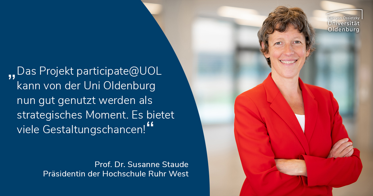 Wie im Newsletter vom Herbst 2021 nachzulesen, ist an der UOL das Projekt participate@UOL gestartet. Es wird im Programm „Hochschullehre durch Digitalisierung stärken“ der Stiftung Innovation in der Hochschullehre (StIL) gefördert.