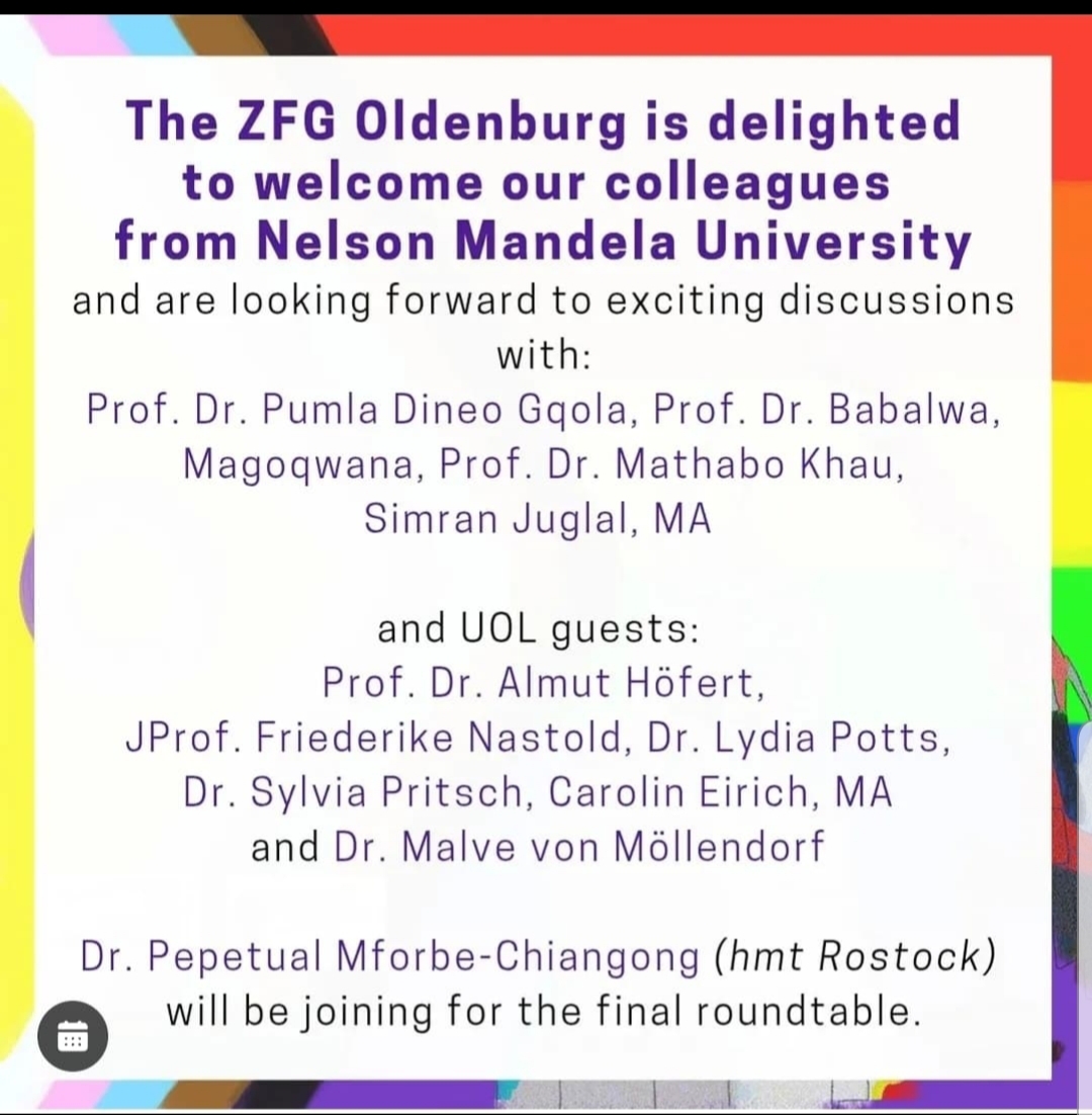 Förderung einer Gender Studies-Summer School mit Unterstützung von Angehörigen der Mandela University in Oldenburg im Juni 2025
