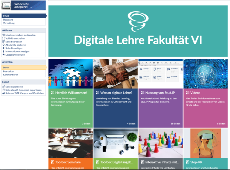 In diesem Kurzleitfaden finden Sie Informationen zum Zugang zu Stud.IP und Ihrer Lehrveranstaltung, sowie den grundlegenden Funktionen zu organisatorischen und kommunikativen Nutzungsmöglichkeiten für Ihre Lehrveranstaltung. Auf dieser Seite haben wir für Sie außerdem weitere Informationen zu den Plugins und anderen Anwendungen für die digitalen Lehre zusammengestellt. Tragen Sie sich auch gerne unverbindlich als Teilnehmer*in für die korrespondierende Veranstaltung Digitale Lehre Fakultät VI ein. Dort können Sie alle grundlegenden Funktionen des Lernmanagementsystems direkt kennenlernen.